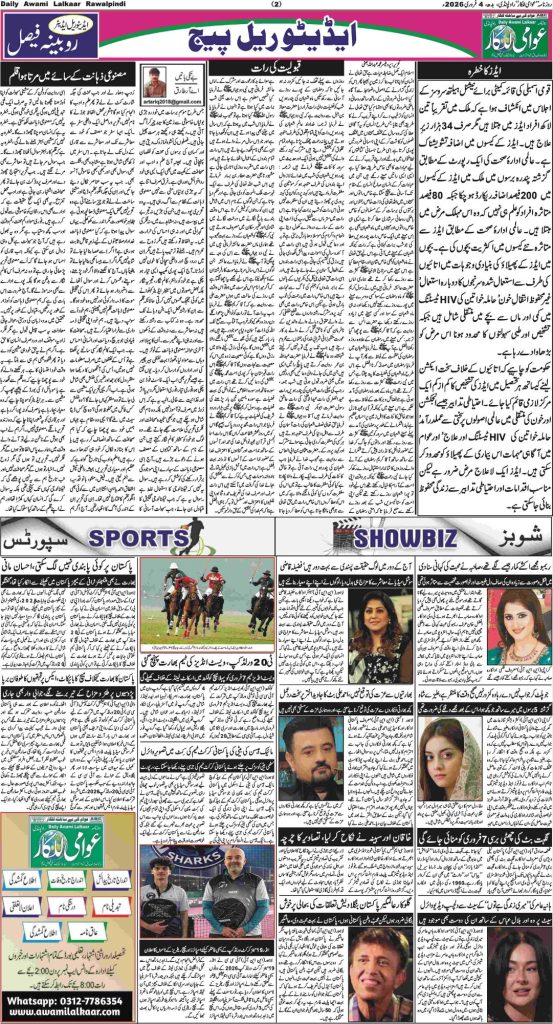پی ڈی ایف ڈاؤن لوڈ کرنے کے لیے نیچے دیے گئے ڈاؤن لوڈ کے بٹن پر کلک کیجئے Awami Lalkaar 04-02-2026Download