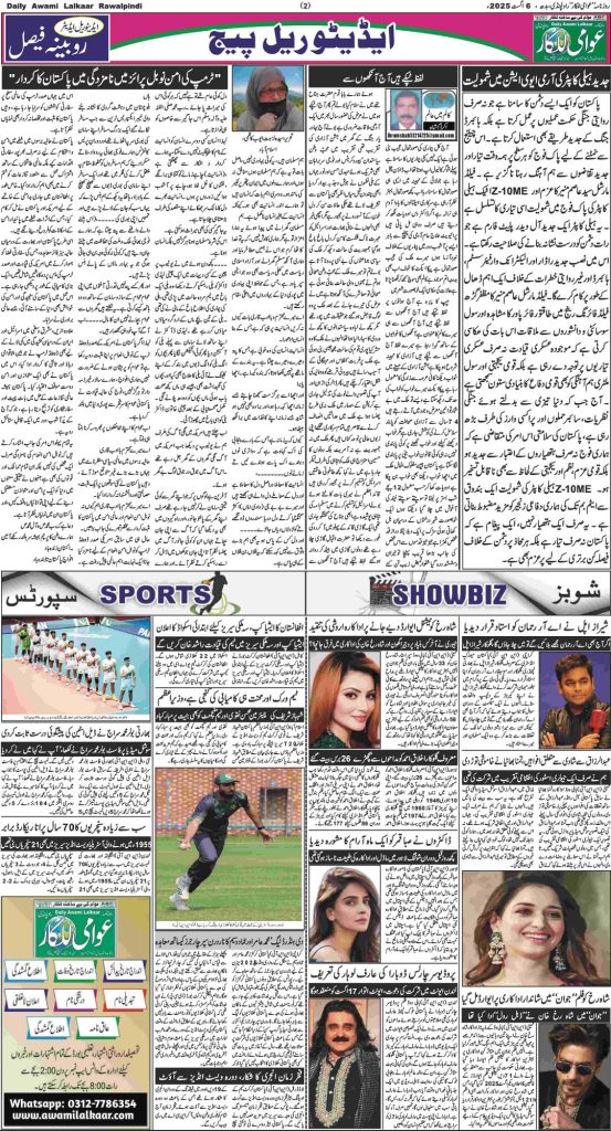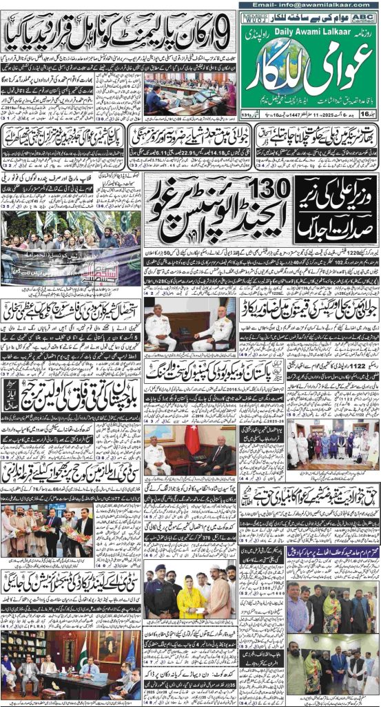 پی ڈی ایف ڈاؤن لوڈ کرنے کے لیے نیچے دیے گئے ڈاؤن لوڈ کے بٹن پر کلک کیجئے Awami Lalkaar 06-08-2025Download