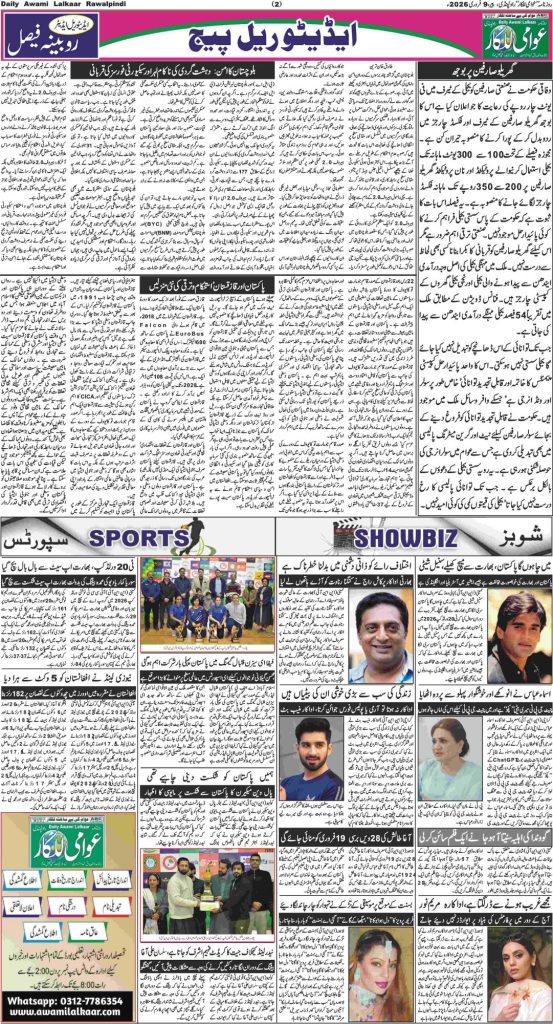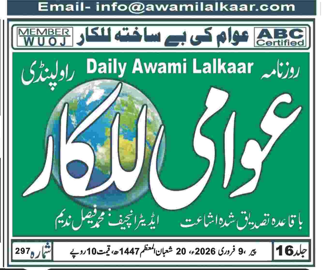 پی ڈی ایف ڈاؤن لوڈ کرنے کے لیے نیچے دیے گئے ڈاؤن لوڈ کے بٹن پر کلک کیجئے Awami Lalkaar 09-02-2026Download