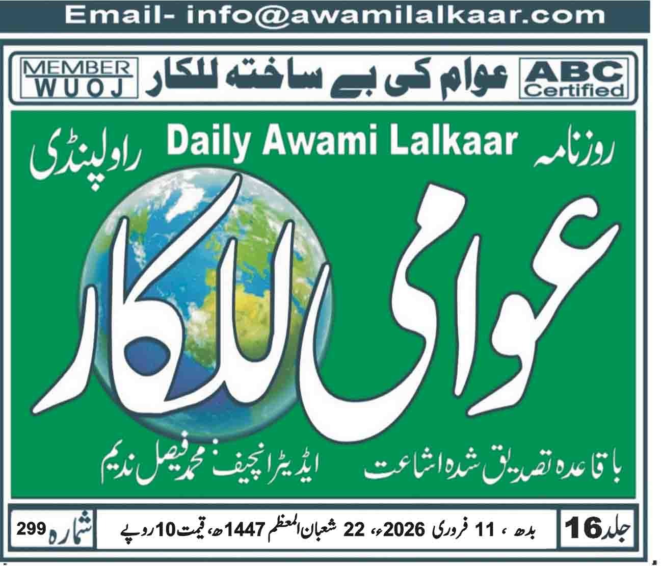 پی ڈی ایف ڈاؤن لوڈ کرنے کے لیے نیچے دیے گئے ڈاؤن لوڈ کے بٹن پر کلک کیجئے Awami Lalkaar 11-02-2026Download