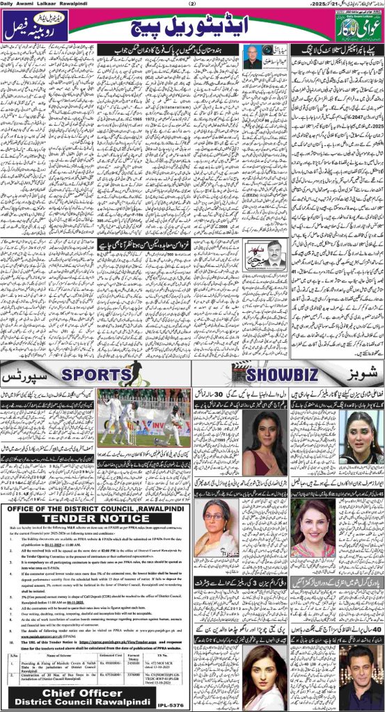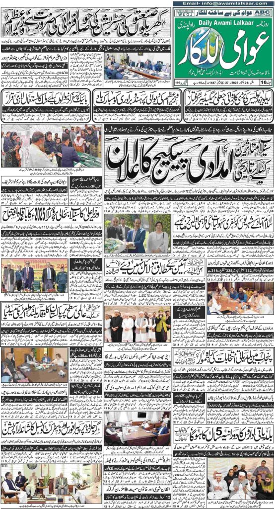 پی ڈی ایف ڈاؤن لوڈ کرنے کے لیے نیچے دیے گئے ڈاؤن لوڈ کے بٹن پر کلک کیجئے Awami Lalkaar 21-10-2025Download