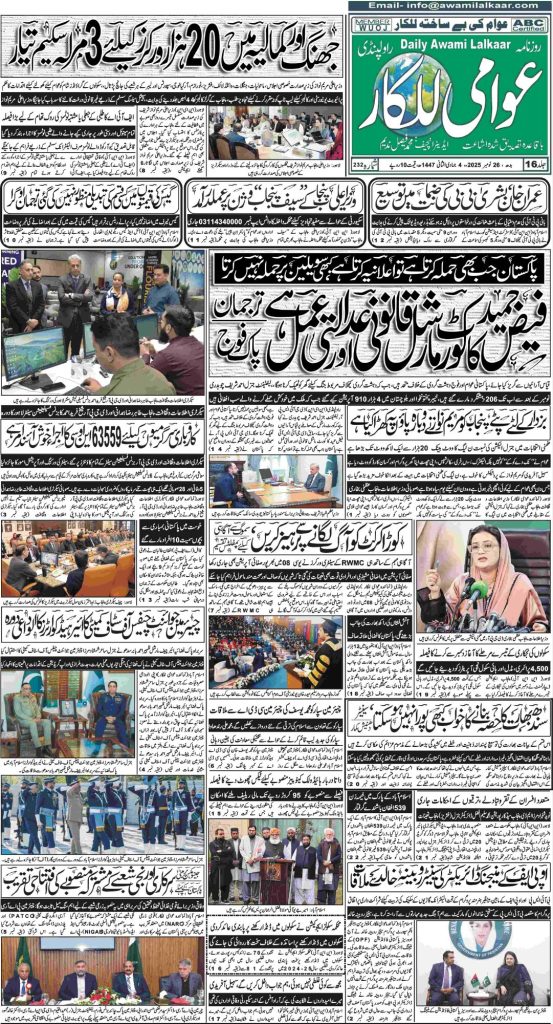 پی ڈی ایف ڈاؤن لوڈ کرنے کے لیے نیچے دیے گئے ڈاؤن لوڈ کے بٹن پر کلک کیجئے Awami Lalkaar 26-11-2025Download