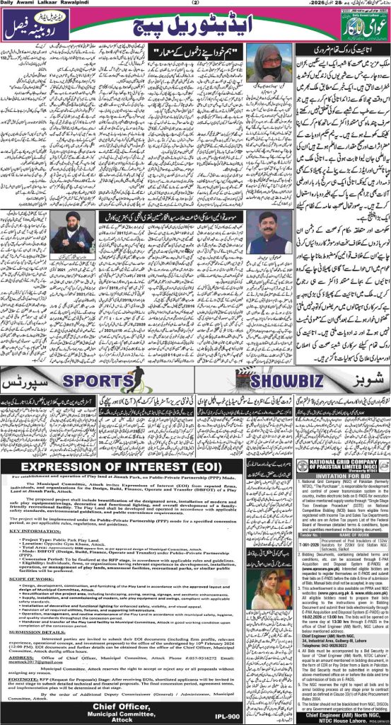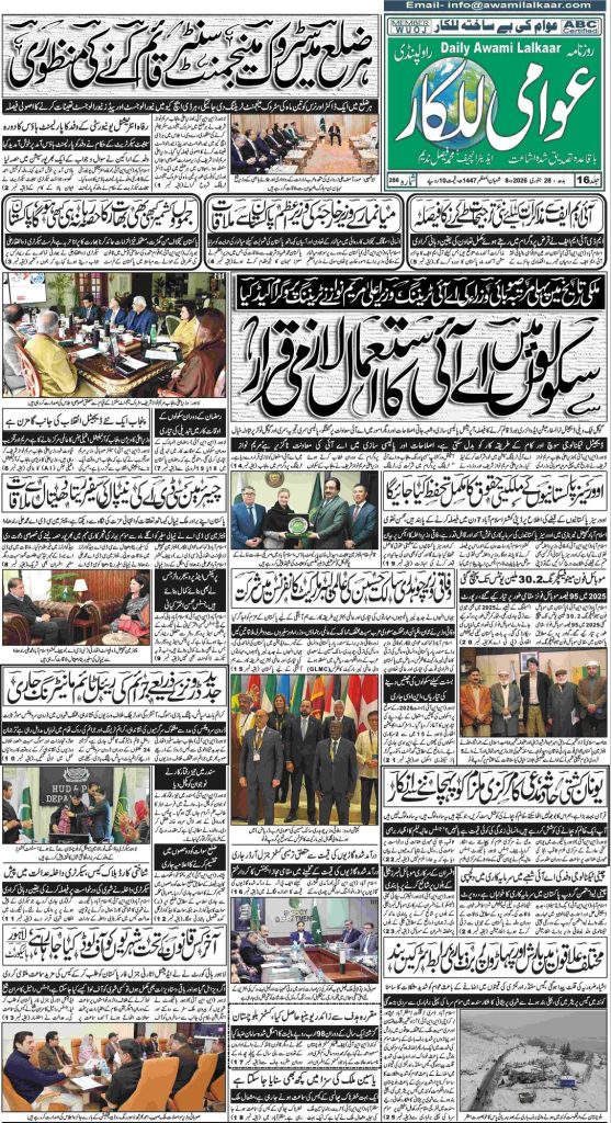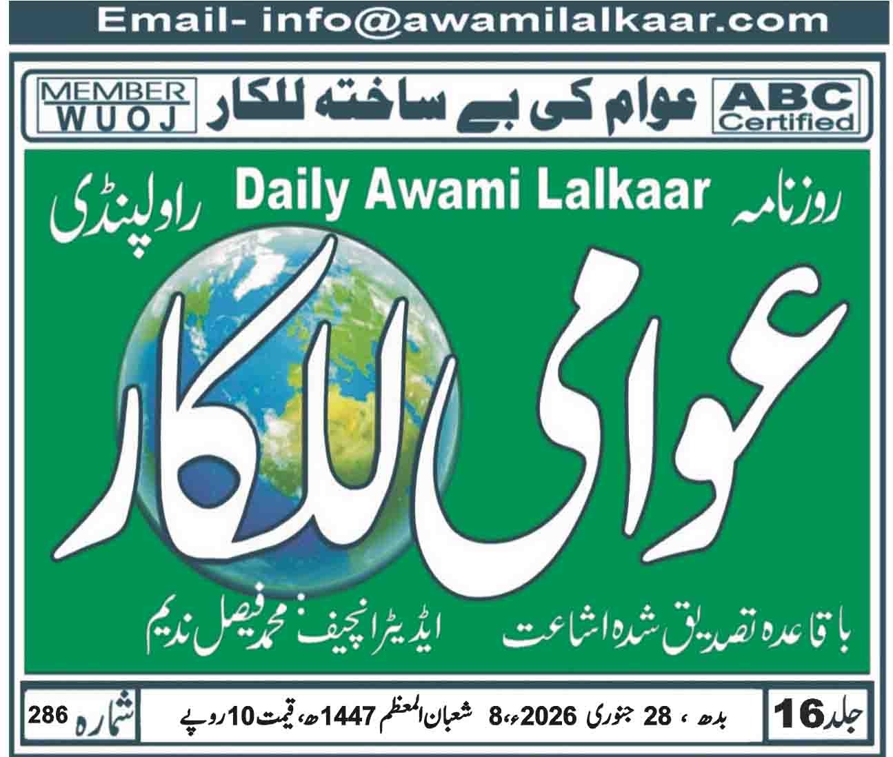 پی ڈی ایف ڈاؤن لوڈ کرنے کے لیے نیچے دیے گئے ڈاؤن لوڈ کے بٹن پر کلک کیجئے Awami Lalkaar 28-01-2026Download