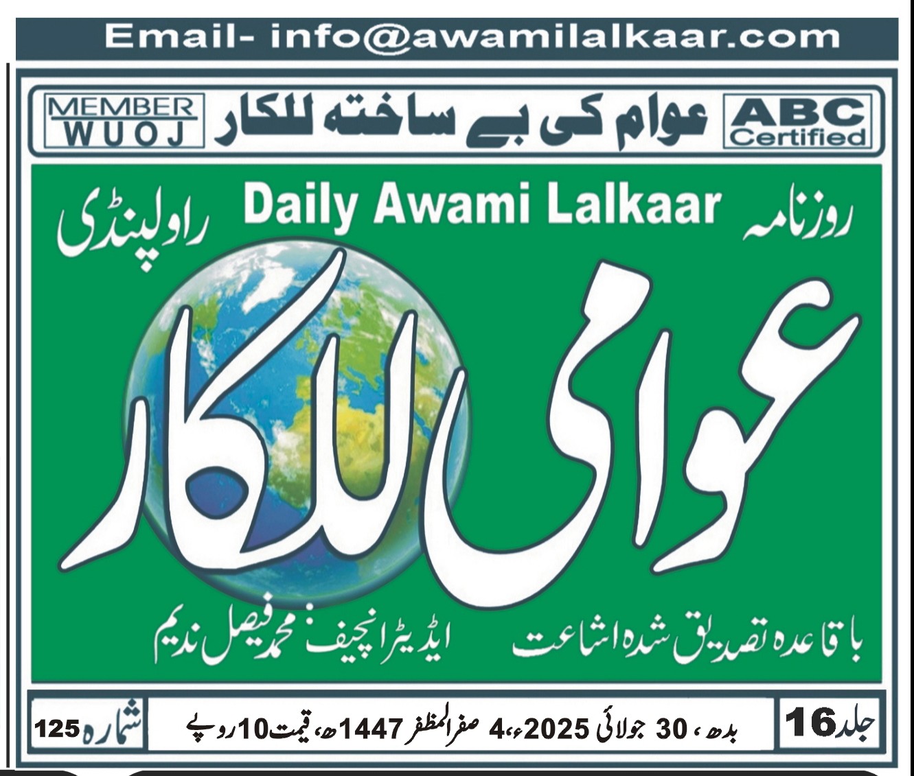 پی ڈی ایف ڈاؤن لوڈ کرنے کے لیے نیچے دیے گئے ڈاؤن لوڈ کے بٹن پر کلک کیجئے Awami Lalkaar 30-07-2025Download
