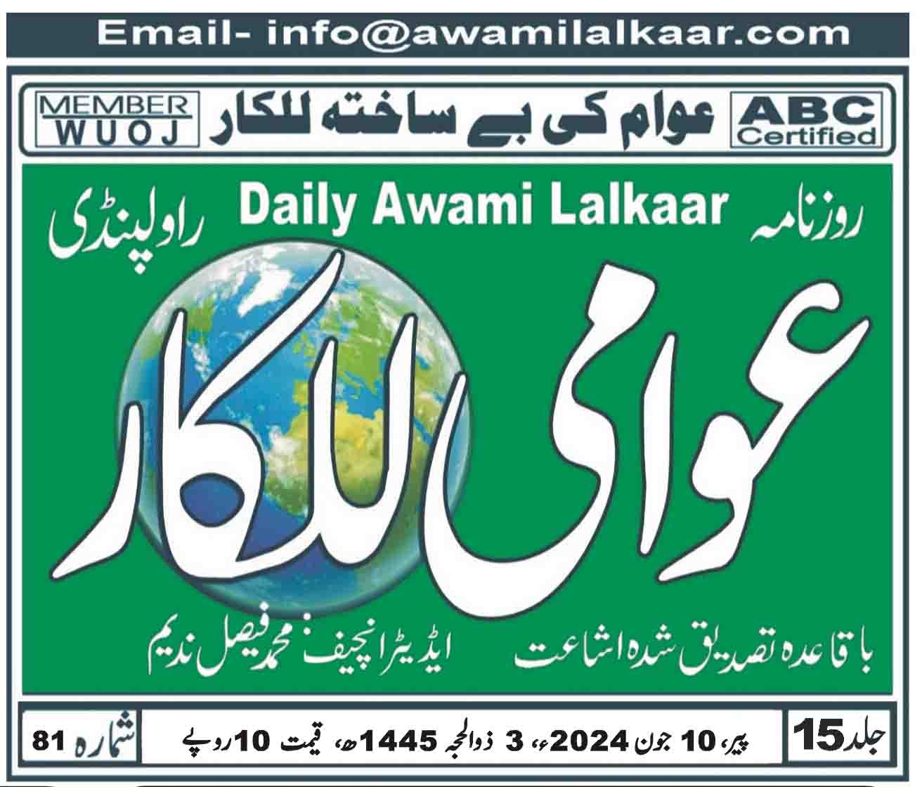 پی ڈی ایف ڈاؤن لوڈ کرنے کے لیے نیچے دیے گئے ڈاؤن لوڈ کے بٹن پر کلک کیجئے Awami Lalkaar 09-06-2024ڈاؤن لوڈ . . . . . . .