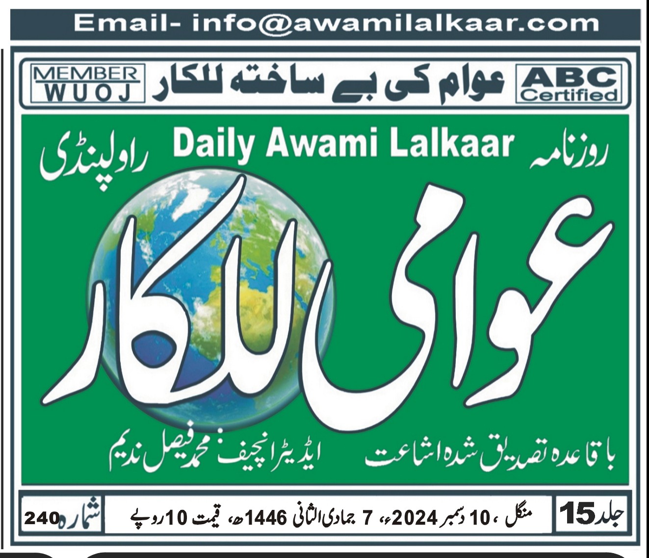 پی ڈی ایف ڈاؤن لوڈ کرنے کے لیے نیچے دیے گئے ڈاؤن لوڈ کے بٹن پر کلک کیجئے Awami Lalkaar 10-12-2024ڈاؤن لوڈ
