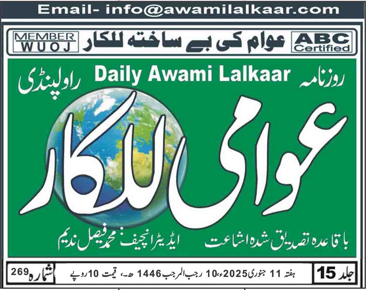 پی ڈی ایف ڈاؤن لوڈ کرنے کے لیے نیچے دیے گئے ڈاؤن لوڈ کے بٹن پر کلک کیجئے Awami Lalkaar 11-01-2025ڈاؤن لوڈ