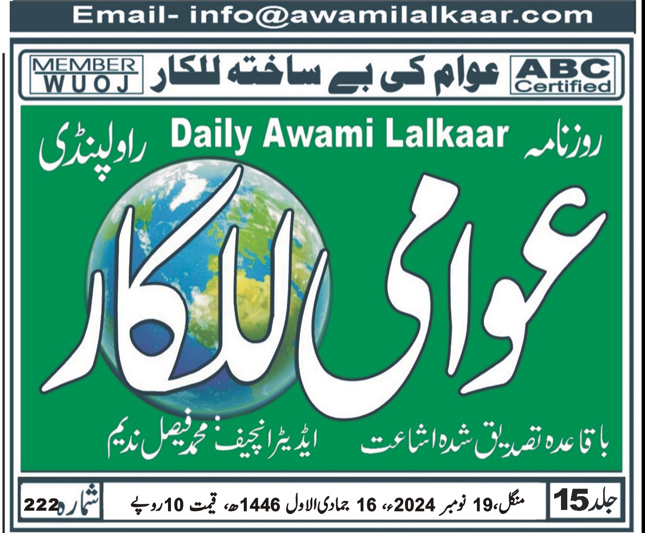 پی ڈی ایف ڈاؤن لوڈ کرنے کے لیے نیچے دیے گئے ڈاؤن لوڈ کے بٹن پر کلک کیجئے Awami-Lalkaar-19-11-2024.pdfڈاؤن لوڈ