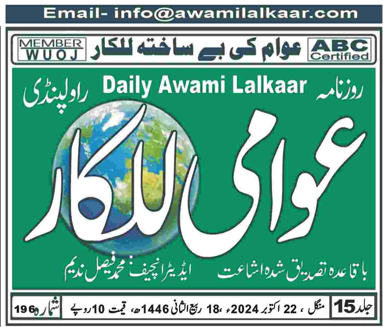 پی ڈی ایف ڈاؤن لوڈ کرنے کے لیے نیچے دیے گئے ڈاؤن لوڈ کے بٹن پر کلک کیجئے Awami Lalkaar 22-10-2024ڈاؤن لوڈ . . . .