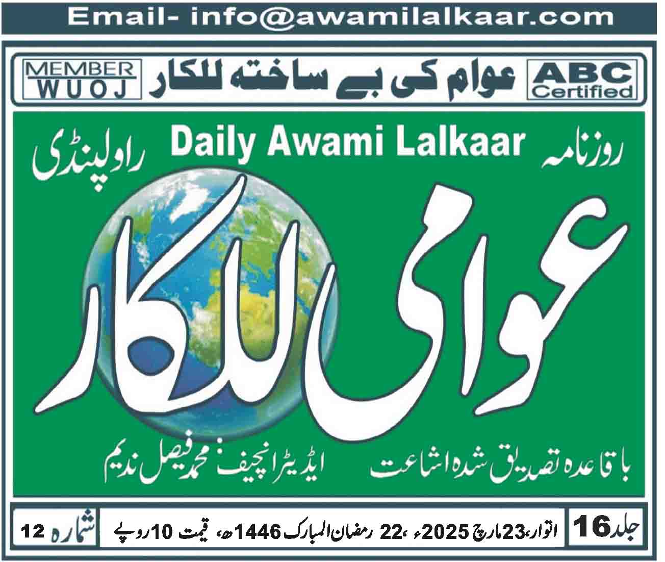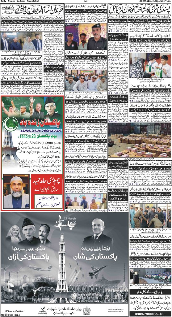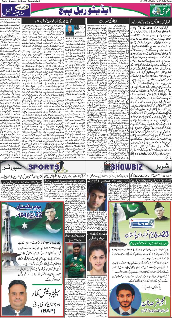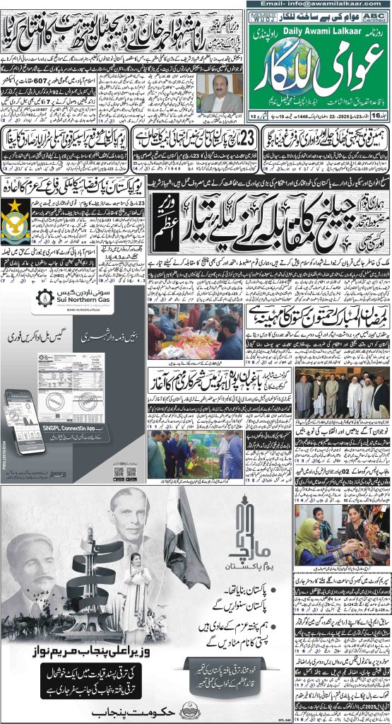 پی ڈی ایف ڈاؤن لوڈ کرنے کے لیے نیچے دیے گئے ڈاؤن لوڈ کے بٹن پر کلک کیجئے Awami Lalkaar 23-03-2025ڈاؤن لوڈ