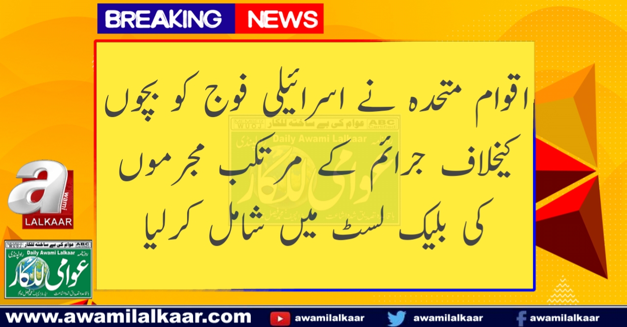 اقوام متحدہ نے اسرائیلی فوج کو بچوں کیخلاف جرائم کے مرتکب مجرموں کی بلیک لسٹ میں شامل کرلیا