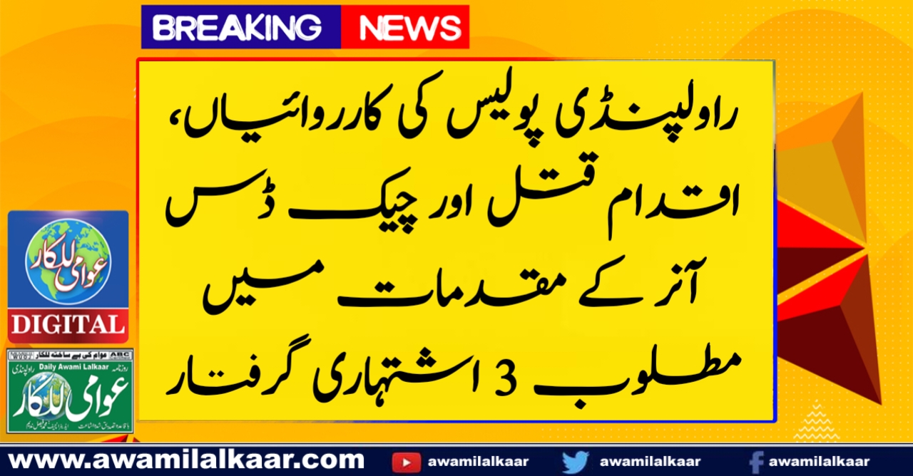 راولپنڈی پولیس کی کارروائیاں، اقدام قتل اور چیک ڈس آنر کے مقدمات میں مطلوب 3 اشتہاری گرفتار