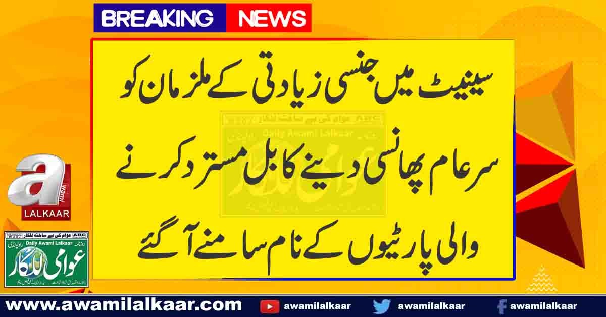سینیٹ میں جنسی زیادتی کے ملزمان کو سرعام پھانسی دینے کا بل مسترد کرنے والی پارٹیوں کے نام سامنے اگئے