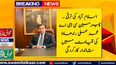 اسلام آباد کی ترقی ۔چیرمین سی ڈی اے محمد علی رندھاوا کی قیادت میں شاندار کارکردگی