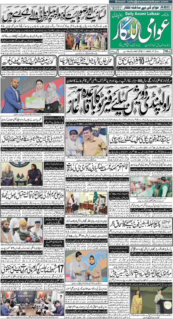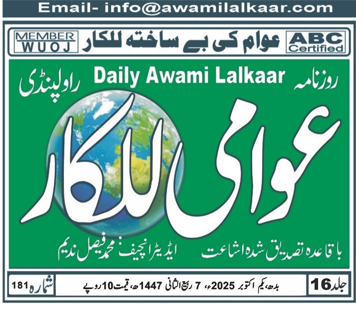 پی ڈی ایف ڈاؤن لوڈ کرنے کے لیے نیچے دیے گئے ڈاؤن لوڈ کے بٹن پر کلک کیجئے Awami Lalkaar 01-10-2025Download