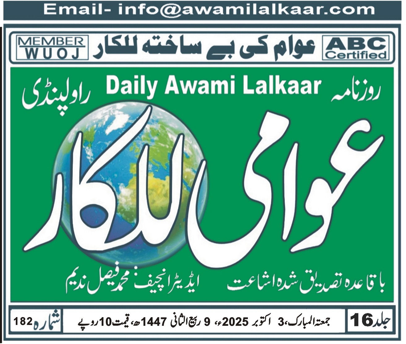 پی ڈی ایف ڈاؤن لوڈ کرنے کے لیے نیچے دیے گئے ڈاؤن لوڈ کے بٹن پر کلک کیجئے Awami Lalkaar 03-10-2025Download