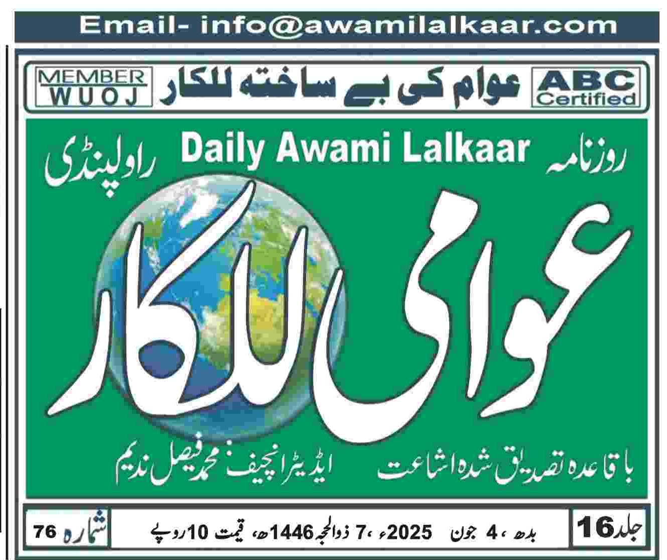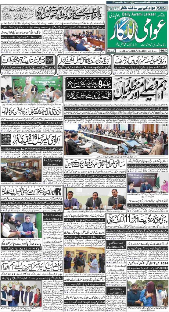 پی ڈی ایف ڈاؤن لوڈ کرنے کے لیے نیچے دیے گئے ڈاؤن لوڈ کے بٹن پر کلک کیجئے Awami Lalkaar 04-06-2025Download