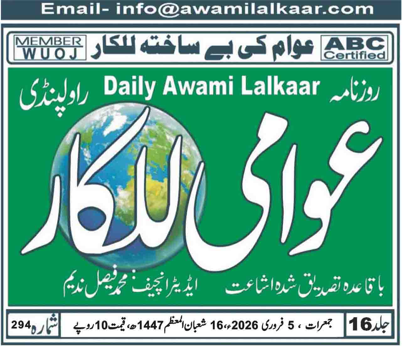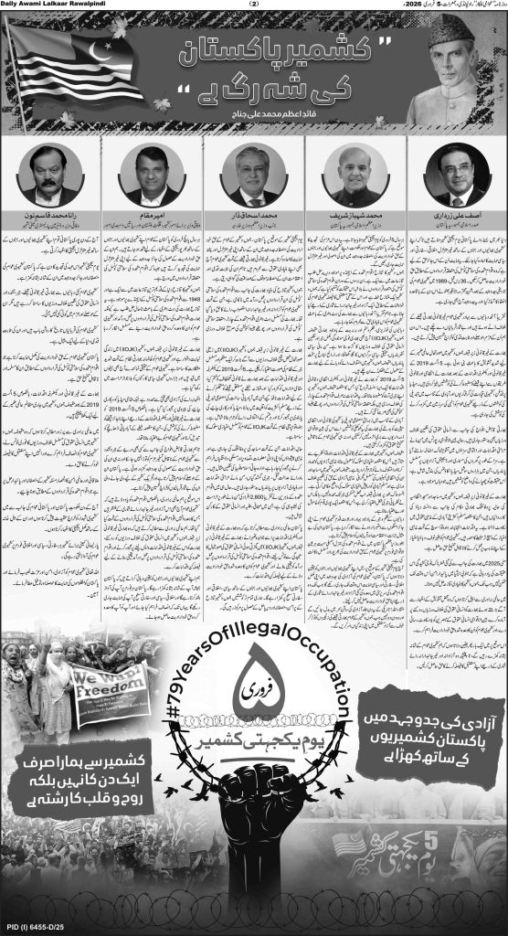 پی ڈی ایف ڈاؤن لوڈ کرنے کے لیے نیچے دیے گئے ڈاؤن لوڈ کے بٹن پر کلک کیجئے Awami Lalkaar 05-02-2026Download