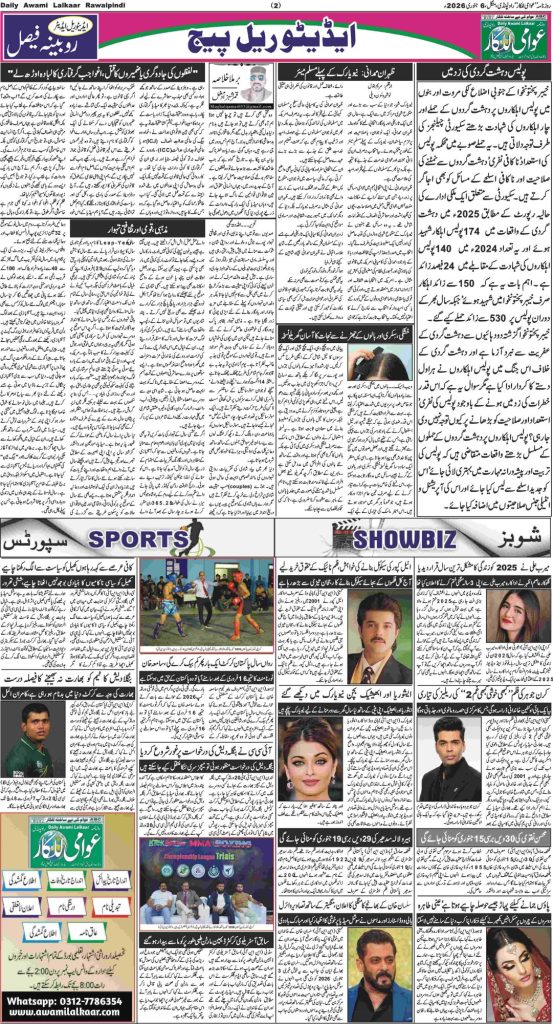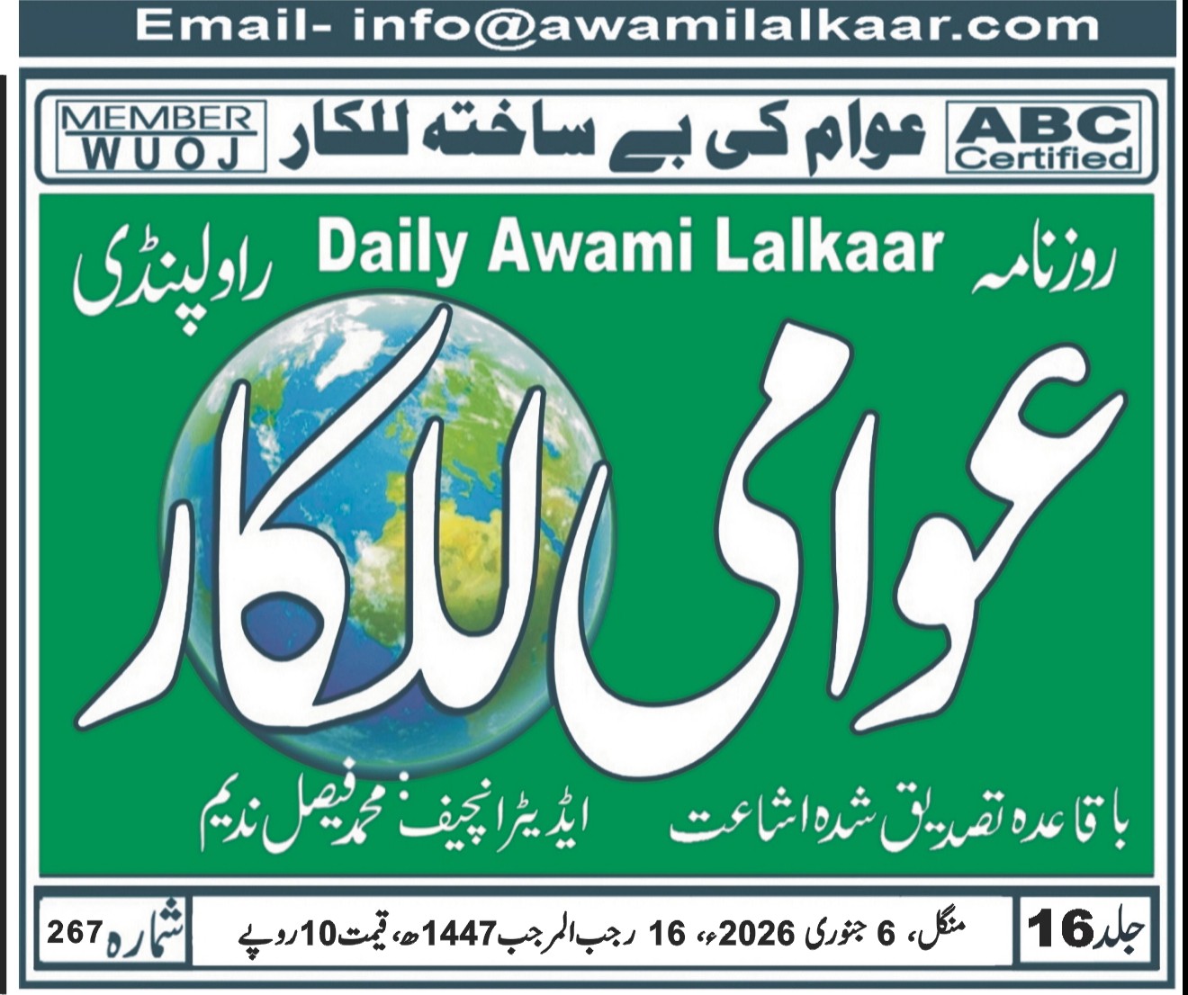 پی ڈی ایف ڈاؤن لوڈ کرنے کے لیے نیچے دیے گئے ڈاؤن لوڈ کے بٹن پر کلک کیجئے Awami Lalkaar 06-01-2025Download