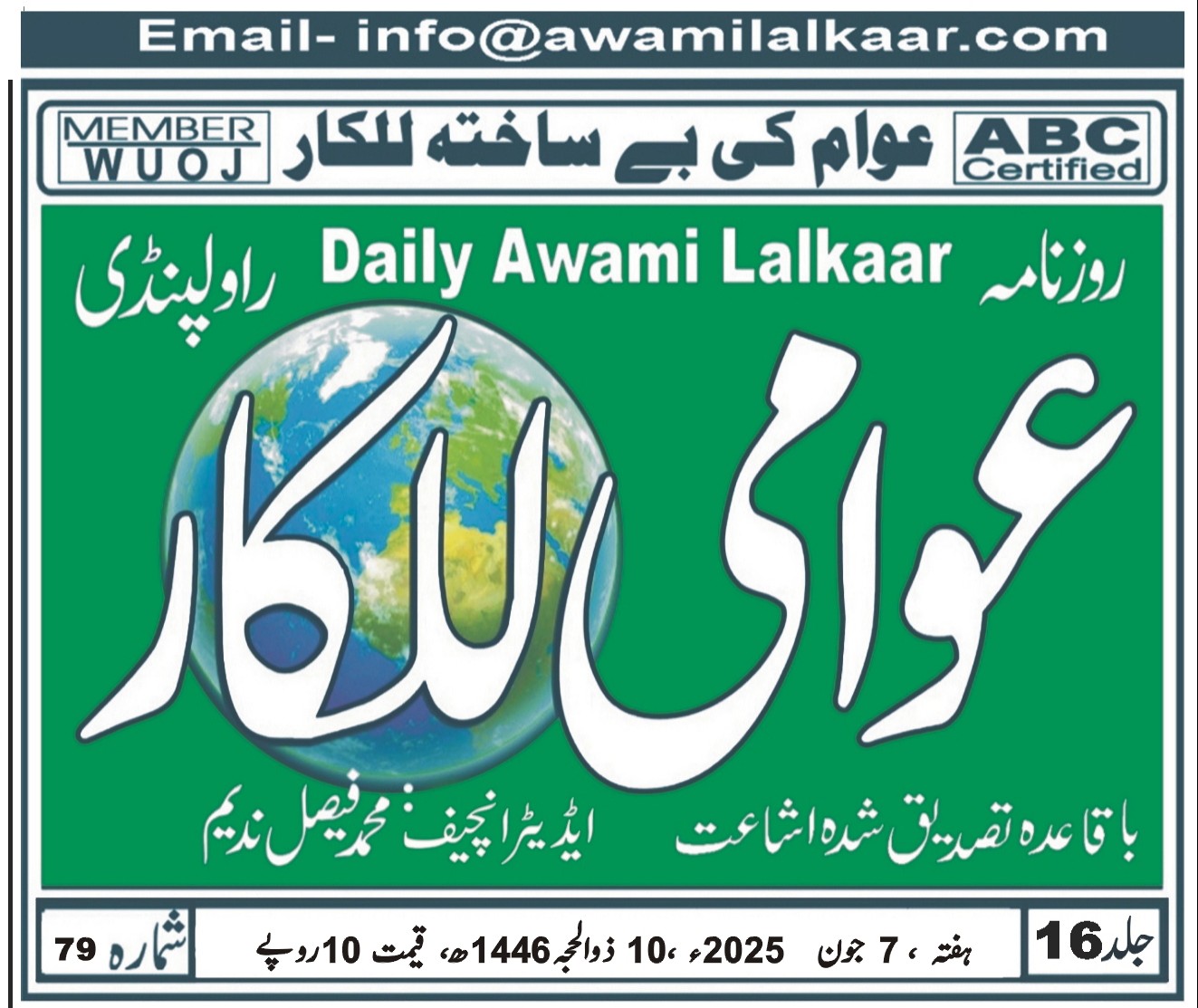 پی ڈی ایف ڈاؤن لوڈ کرنے کے لیے نیچے دیے گئے ڈاؤن لوڈ کے بٹن پر کلک کیجئے Awami Lalkaar 07-06-2025Download