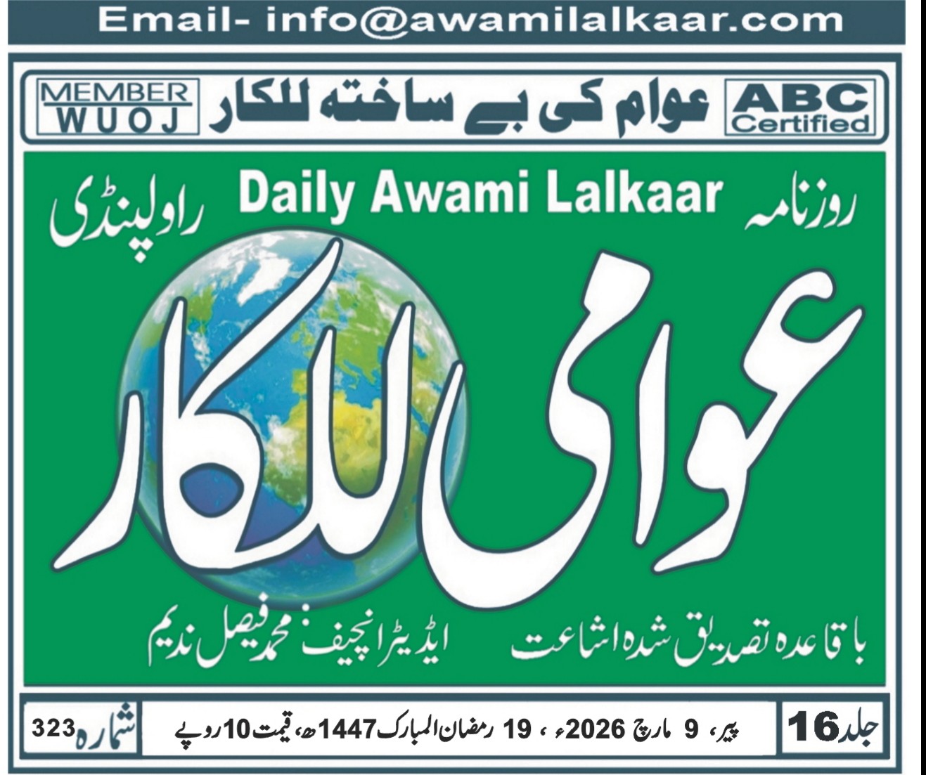 پی ڈی ایف ڈاؤن لوڈ کرنے کے لیے نیچے دیے گئے ڈاؤن لوڈ کے بٹن پر کلک کیجئے Awami Lalkaar 09-03-2026ڈاؤن لوڈ