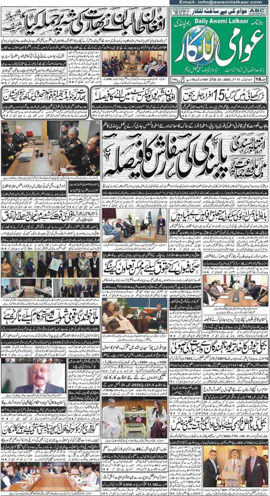 پی ڈی ایف ڈاؤن لوڈ کرنے کے لیے نیچے دیے گئے ڈاؤن لوڈ کے بٹن پر کلک کیجئے Awami Lalkaar 17-10-2025Download