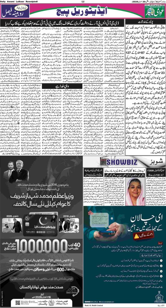 عوامی للکار راولپنڈی بروز منگل 20 جنوری 2026