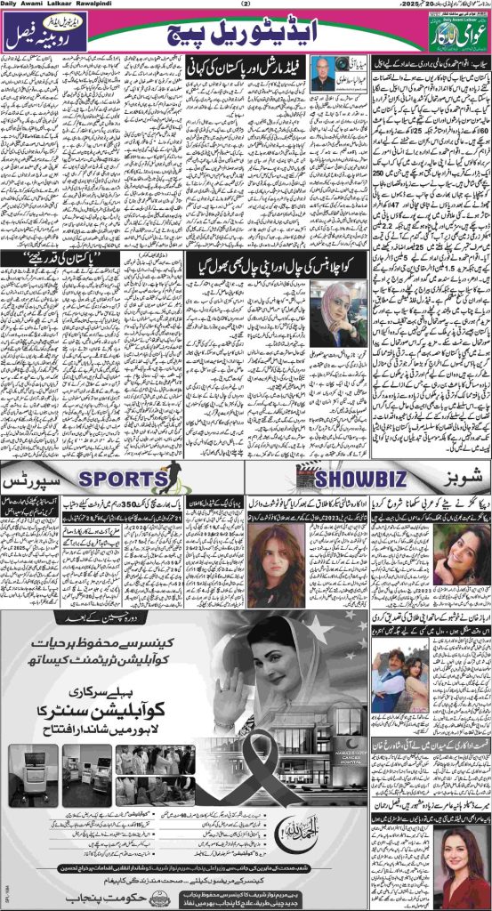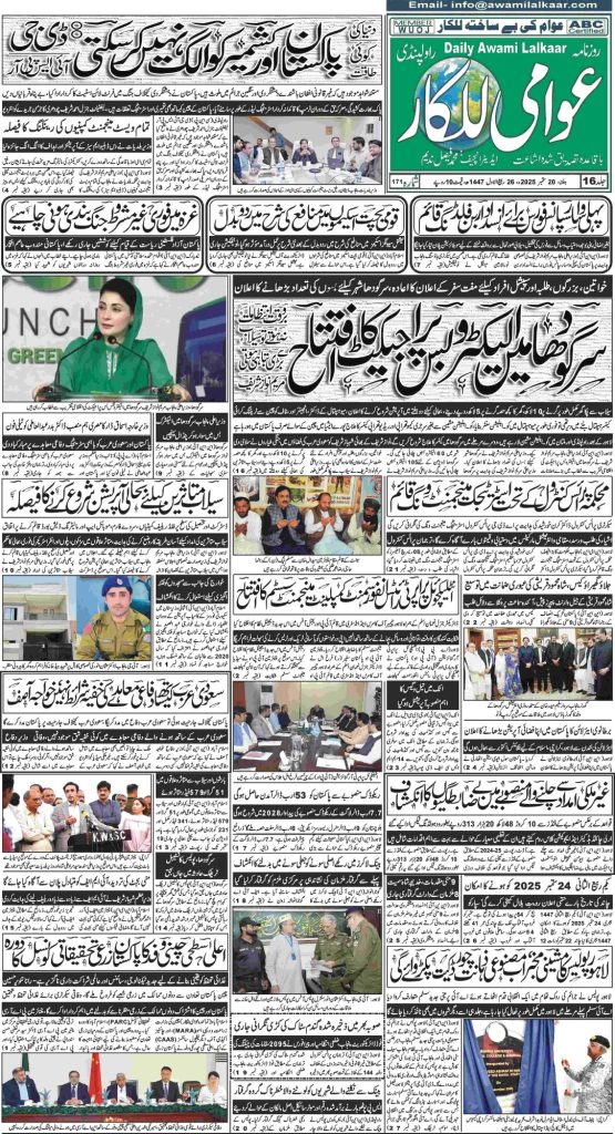 پی ڈی ایف ڈاؤن لوڈ کرنے کے لیے نیچے دیے گئے ڈاؤن لوڈ کا بٹن پر کلک کیجئے Awami Lalkaar 20-09-2025Download