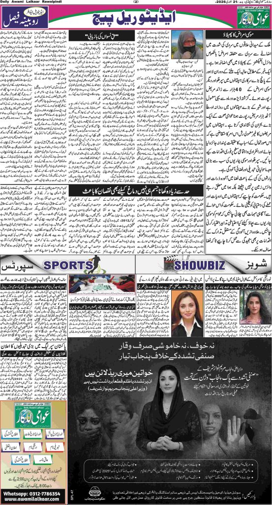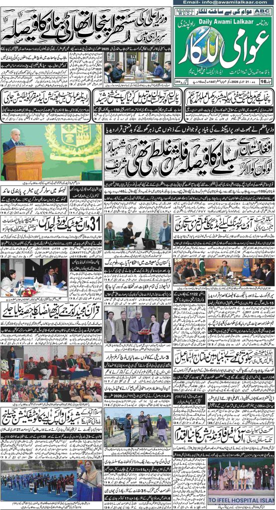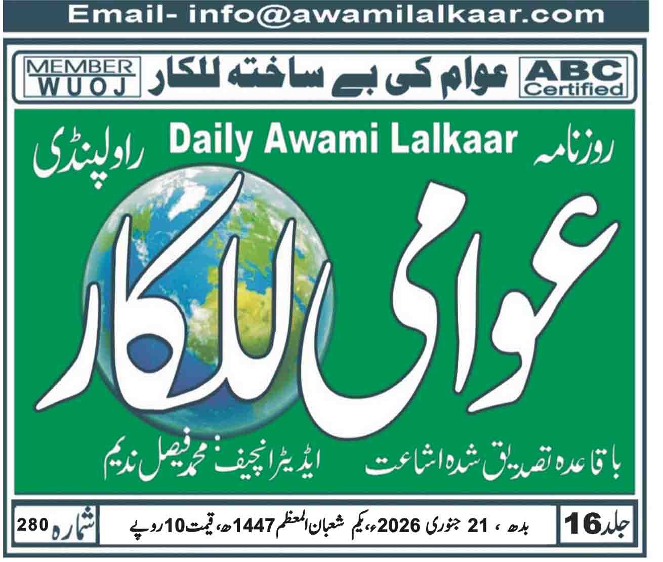 پی ڈی ایف ڈاؤن لوڈ کرنے کے لیے نیچے دیے گئے ڈاؤن لوڈ کے بٹن پر کلک کیجئے Awami Lalkaar 21-01-2026ڈاؤن لوڈ