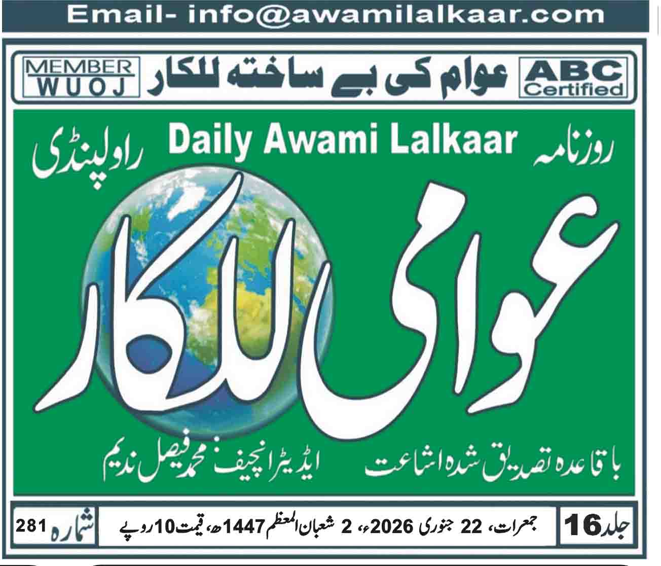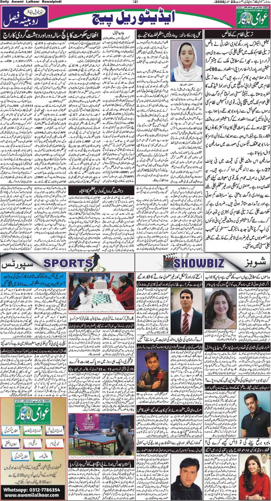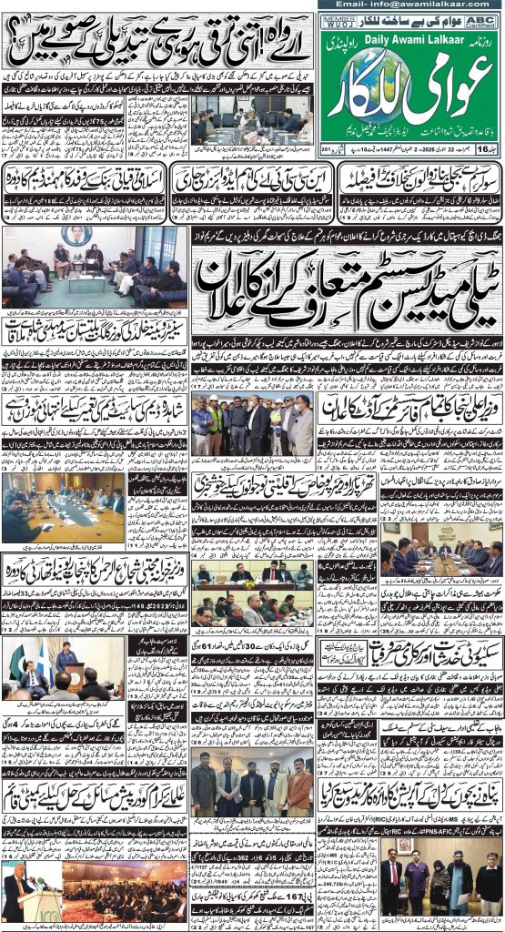 پی ڈی ایف ڈاؤن لوڈ کرنے کے لیے نیچے دیے گئے ڈاؤن لوڈ کے بٹن پر کلک کیجئے Awami Lalkaar 22-01-2026ڈاؤن لوڈ