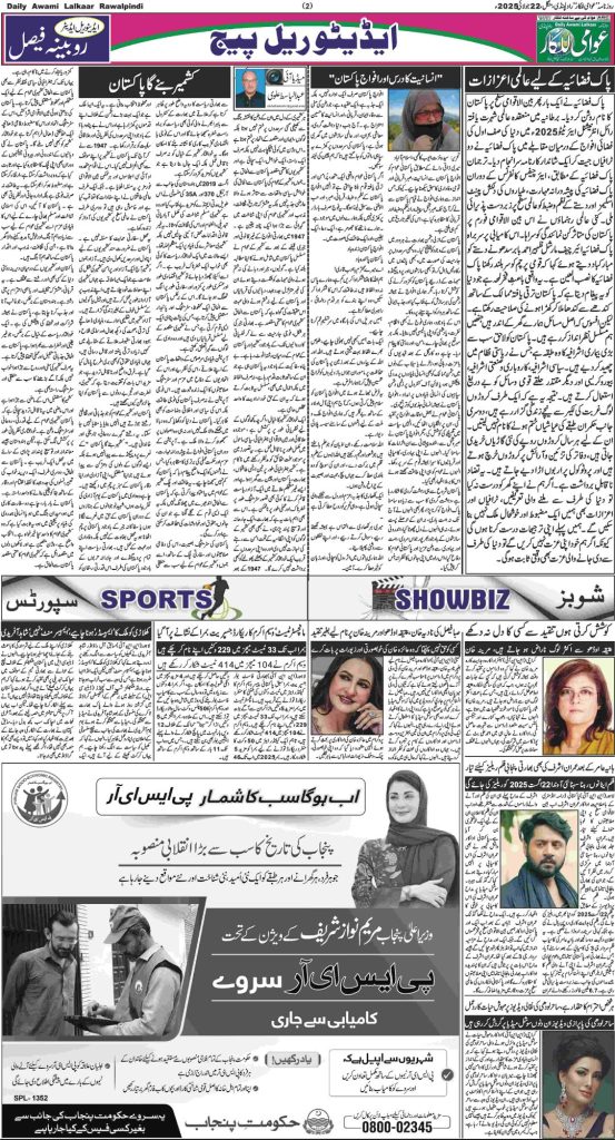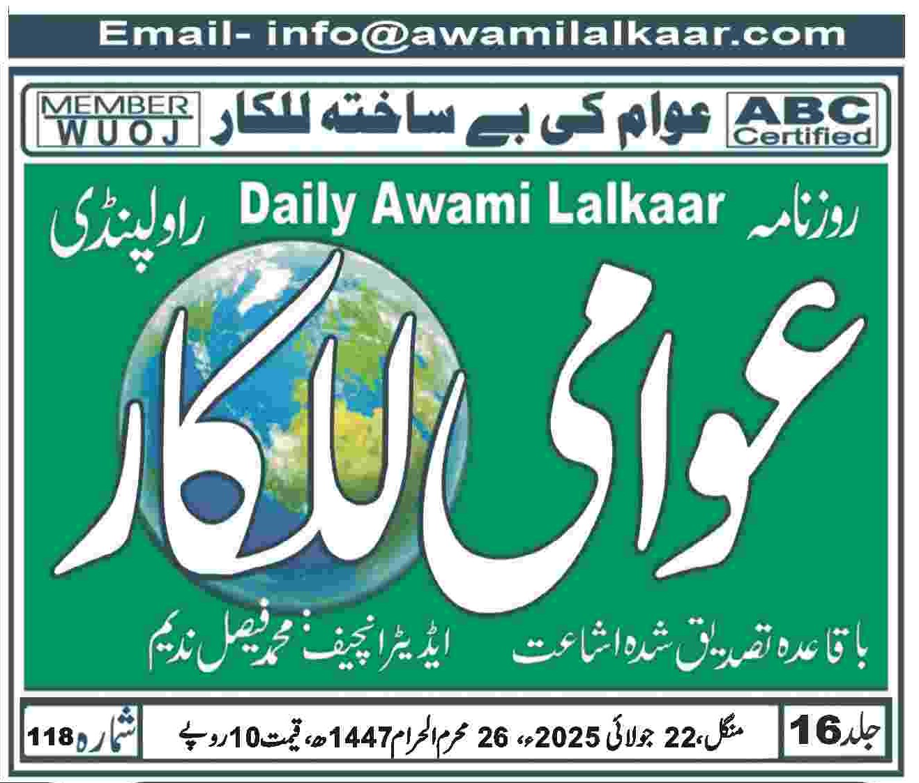 پی ڈی ایف ڈاؤن لوڈ کرنے کے لیے نیچے دیے گئے ڈاؤن لوڈ کے بٹن پر کلک کیجئے Awami Lalkaar 22-07-2025Download