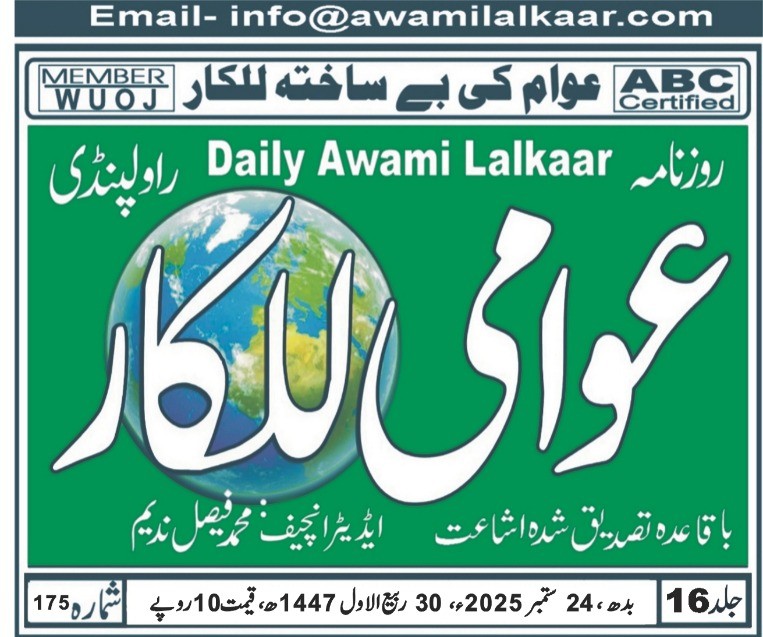 پی ڈی ایف ڈاؤن لوڈ کرنے کے لیے نیچے دیے گئے ڈاؤن لوڈ کے بٹن پر کلک کیجئے Awami Lalkaar 24-09-2025Download