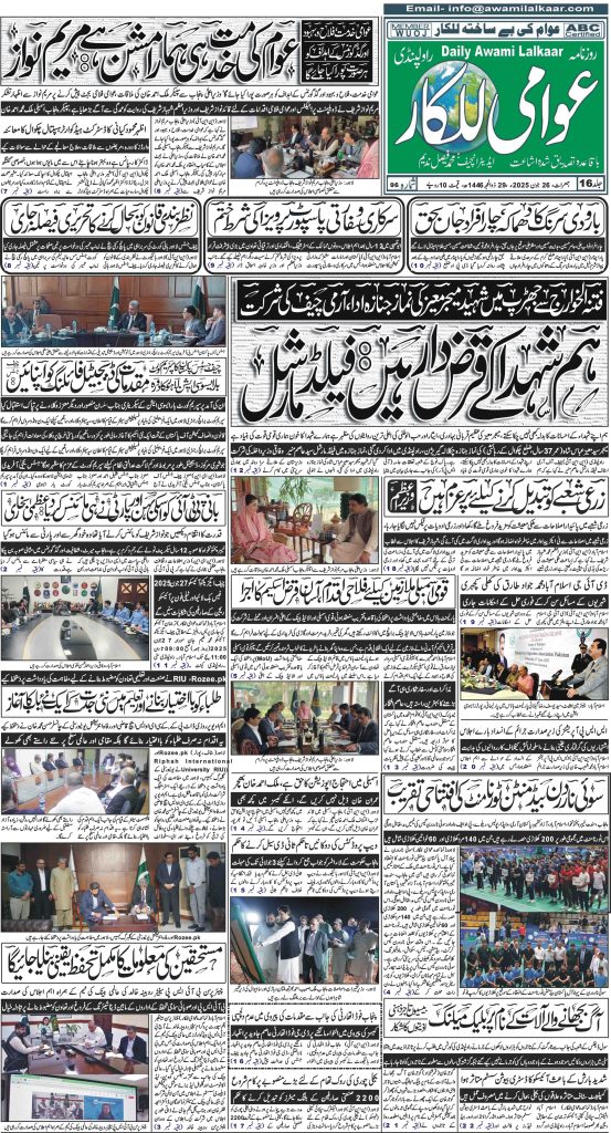 پی ڈی ایف ڈاؤن لوڈ کرنے کے لیے نیچے دیے گئے ڈاؤن لوڈ کے بٹن پر کلک کیجئے Awami Lalkaar 26-06-2025ڈاؤن لوڈ