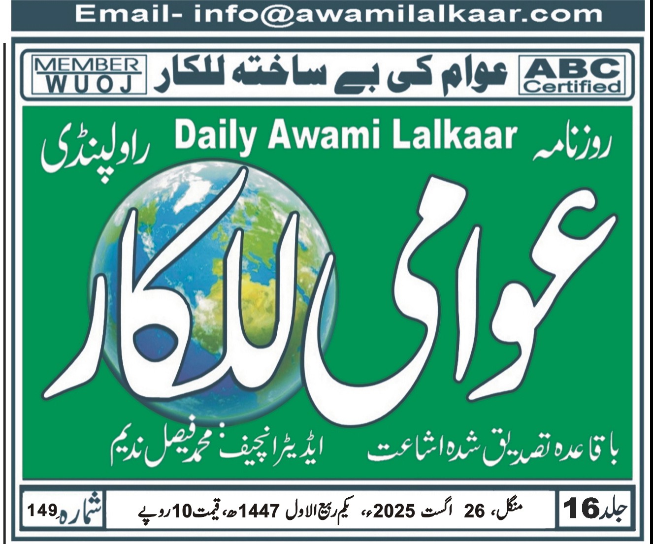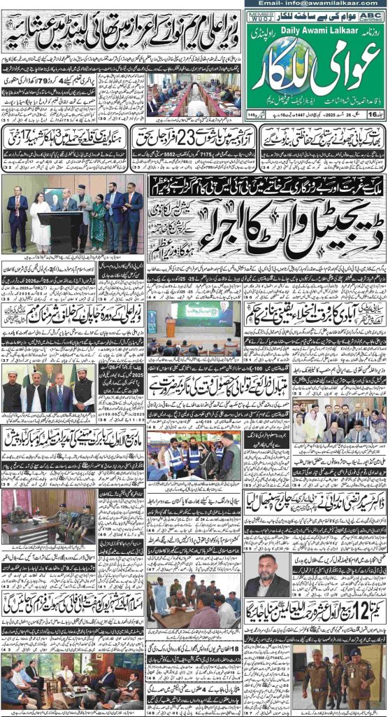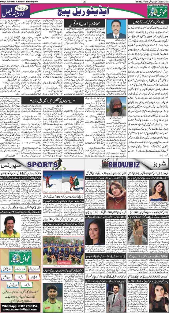 پی ڈی ایف ڈاؤن لوڈ کرنے کے لیے نیچے دیے گئے ڈاؤن لوڈ کے بٹن پر کلک کیجئے Awami Lalkaar 26-08-2025Download