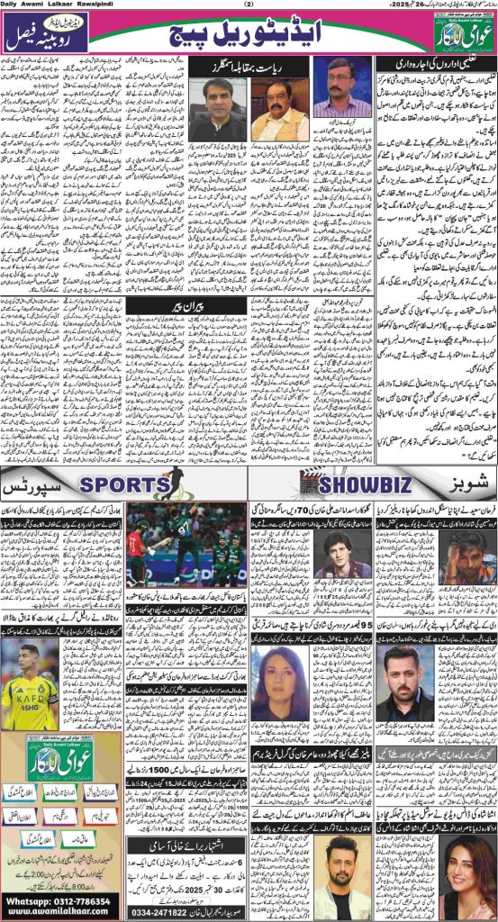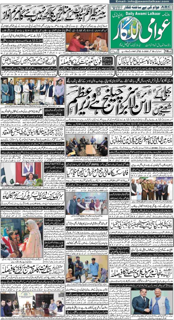 پی ڈی ایف ڈاؤن لوڈ کرنے کے لیے نیچے دیے گئے ڈاؤن لوڈ کے بٹن پر کلک کیجئے Awami Lalkaar 26-09-2025Download