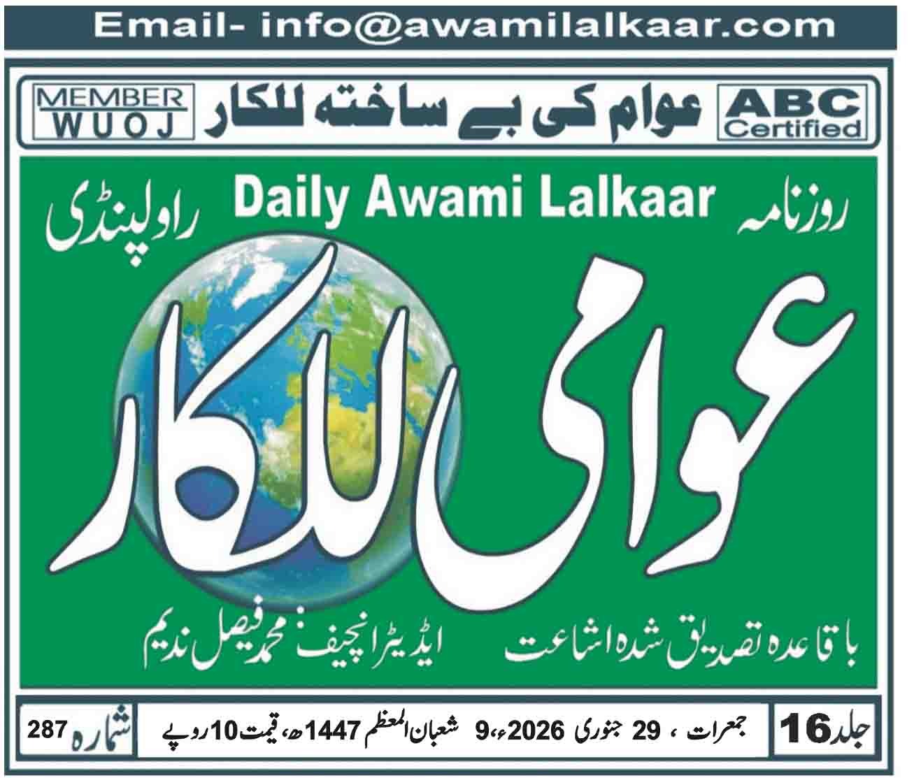 عوامی للکار راولپنڈی بروز جمعرات 29 جنوری 2026