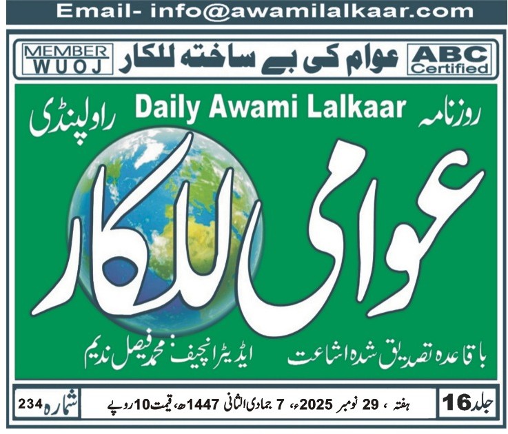 پی ڈی ایف ڈاؤن لوڈ کرنے کے لیے نیچے دیے گئے ڈاؤن لوڈ کے بٹن پر کلک کیجئے Awami Lalkaar 29-11-2025Download