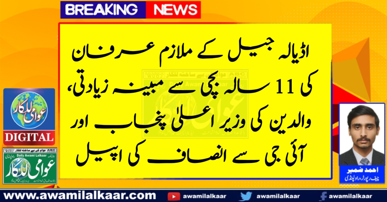 اڈیالہ جیل کے ملازم عرفان کی 11 سالہ بچی سے مبینہ زیادتی، والدین کی وزیر اعلیٰ پنجاب اور آئی جی سے انصاف کی اپیل