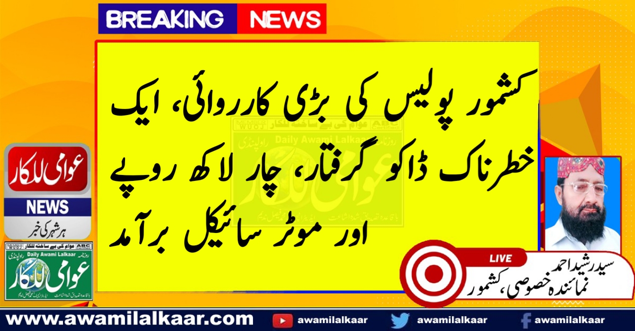 کشمور پولیس کی بڑی کارروائی، ایک خطرناک ڈاکو گرفتار، چار لاکھ روپے اور موٹر سائیکل برآمد