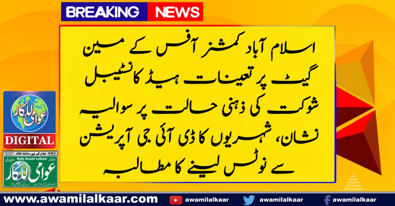 اسلام آباد کمشنر آفس کے مین گیٹ پر تعینات ہیڈ کانسٹیبل شوکت کی ذہنی حالت پر سوالیہ نشان، شہریوں کا ڈی آئی جی آپریشن سے نوٹس لینے کا مطالبہ