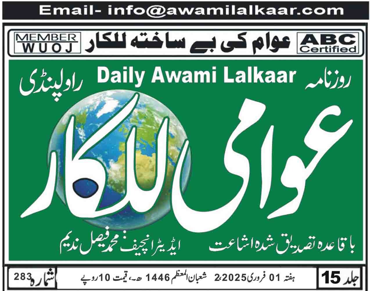پی ڈی ایف ڈاؤن لوڈ کرنے کے لیے نیچے دیے گئے ڈاؤن لوڈ کے بٹن پر کلک کیجئے Awami Lalkaar 01-02-2025ڈاؤن لوڈ