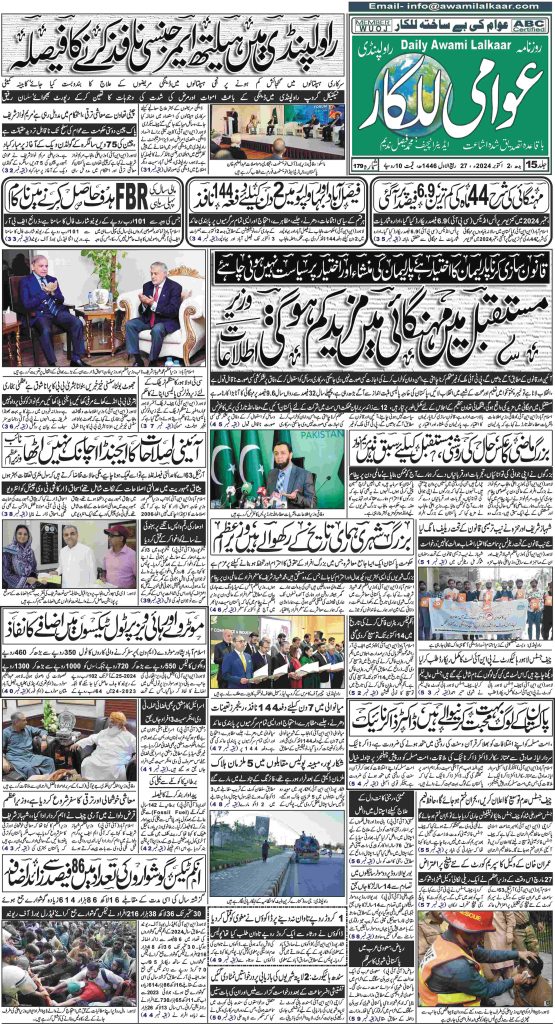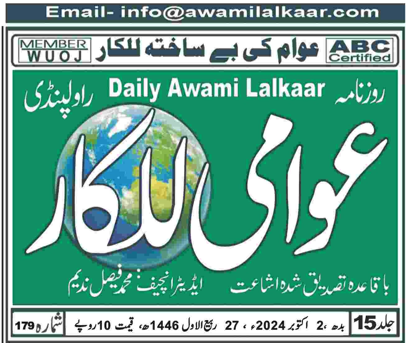 پی ڈی ایف ڈاؤن لوڈ کرنے کے لیے نیچے دیے گئے ڈاؤن لوڈ کے بٹن پر کلک کیجئے Awami Lalkaar 02-10-2024ڈاؤن لوڈ . . . . . .