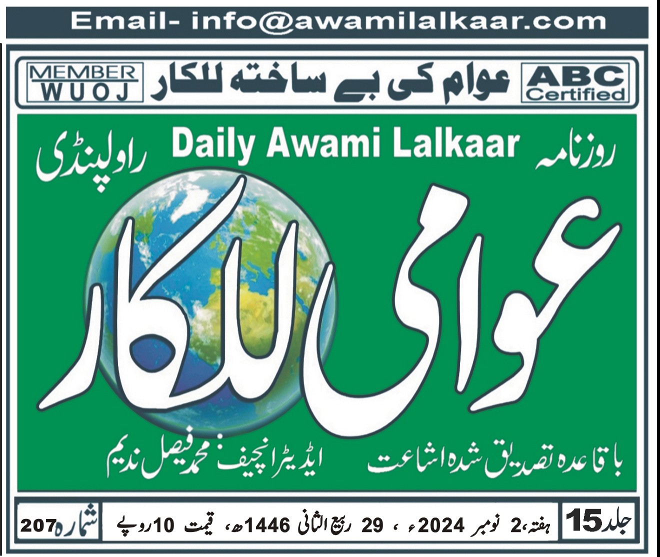 پی ڈی ایف ڈاؤن لوڈ کرنے کے لیے نیچے دیے گئے ڈاؤن لوڈ کے بٹن پر کلک کیجئے Awami Lalkaar 02-11-2024Download