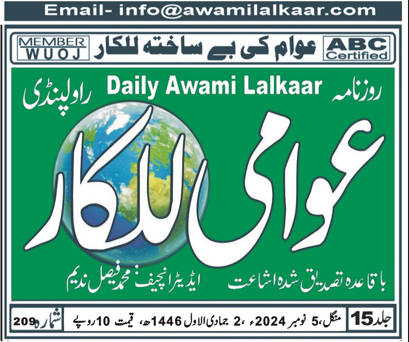پی ڈی ایف ڈاؤن لوڈ کرنے کے لیے نیچے دیے گئے ڈاؤن لوڈ کے بٹن پر کلک کیجئے Awami Lalkaar 05-11-2024Download