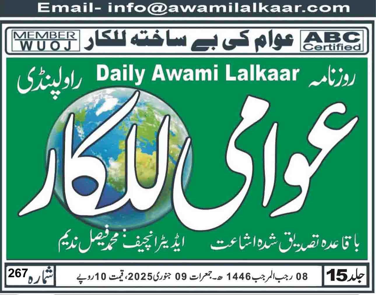 پی ڈی ایف ڈاؤن لوڈ کرنے کے لیے نیچے دیے گئے ڈاؤن لوڈ کے بٹن پر کلک کیجئے Awami Lalkaar 09-01-2025ڈاؤن لوڈ