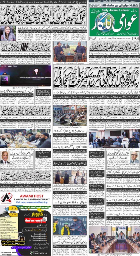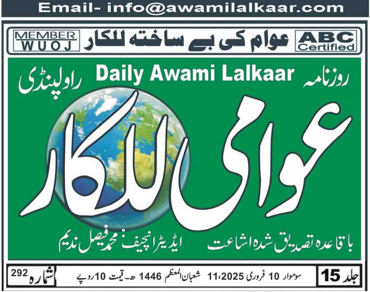 پی ڈی ایف ڈائونلوڈ کرنے کے لیے نیچے دیے گئے لنک پر کلک کیجیے Awami Lalkaar 10-02-2025ڈاؤن لوڈ