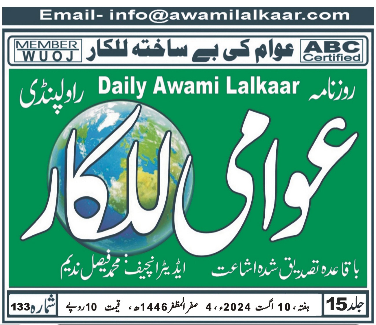 پی ڈی ایف ڈاؤن لوڈ کرنے کے لیے نیچے دیے گئے ڈاؤن لوڈ کے بٹن پر کلک کیجئے Awami Lalkaar 10-08-2024ڈاؤن لوڈ . . . . . . . .