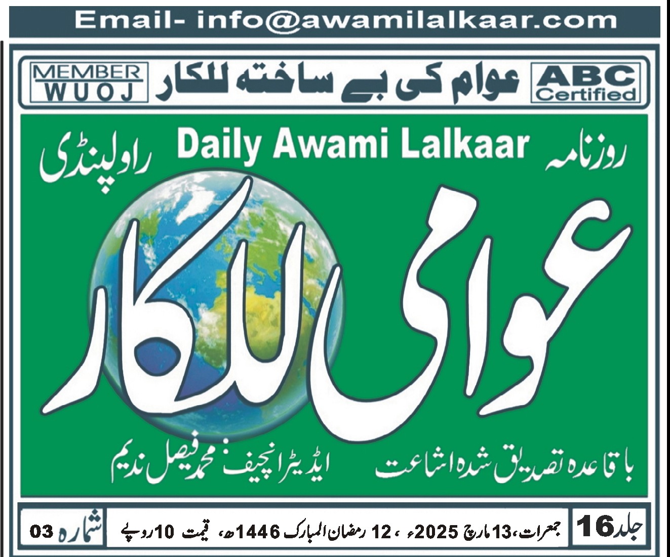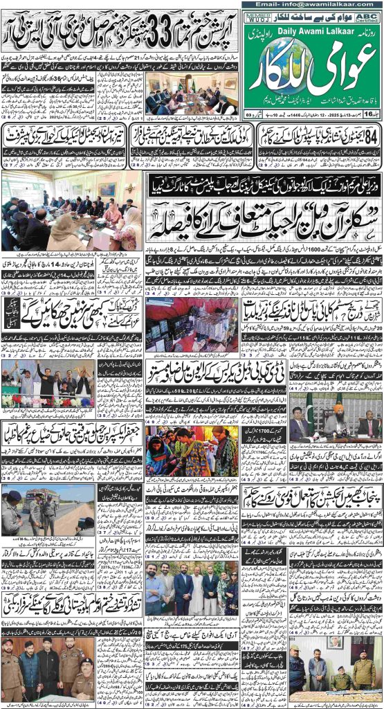 پی ڈی ایف ڈاؤن لوڈ کرنے کے لیے نیچے دیے گئے ڈاؤن لوڈ کے بٹن پر کلک کیجئے Awami Lalkaar 13-03-2025ڈاؤن لوڈ