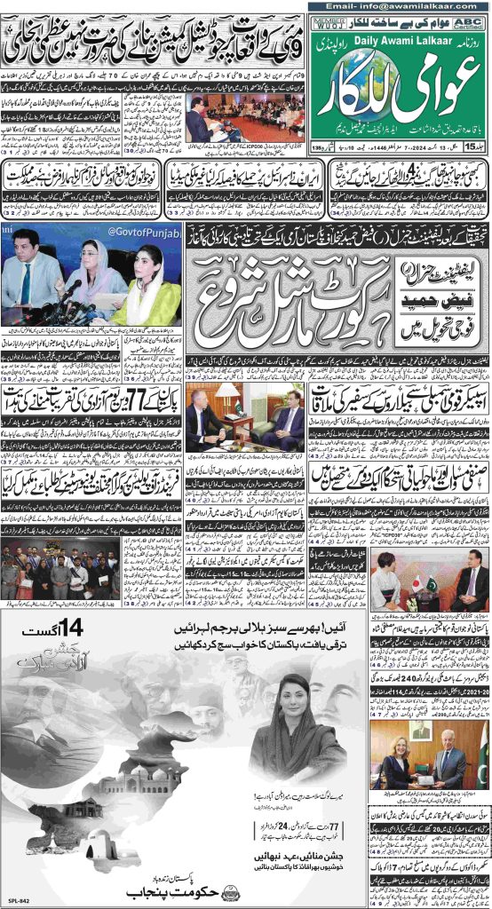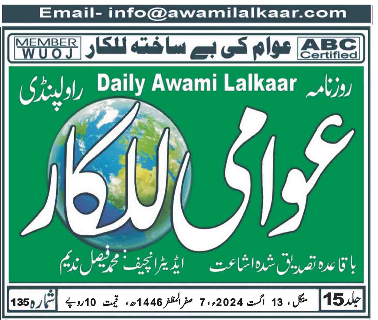 پی ڈی ایف ڈاؤن لوڈ کرنے کے لیے نیچے دیے گئے ڈاؤن لوڈ کے بٹن پر کلک کیجئے Awami Lalkaar 13-08-2024ڈاؤن لوڈ . . . . . .