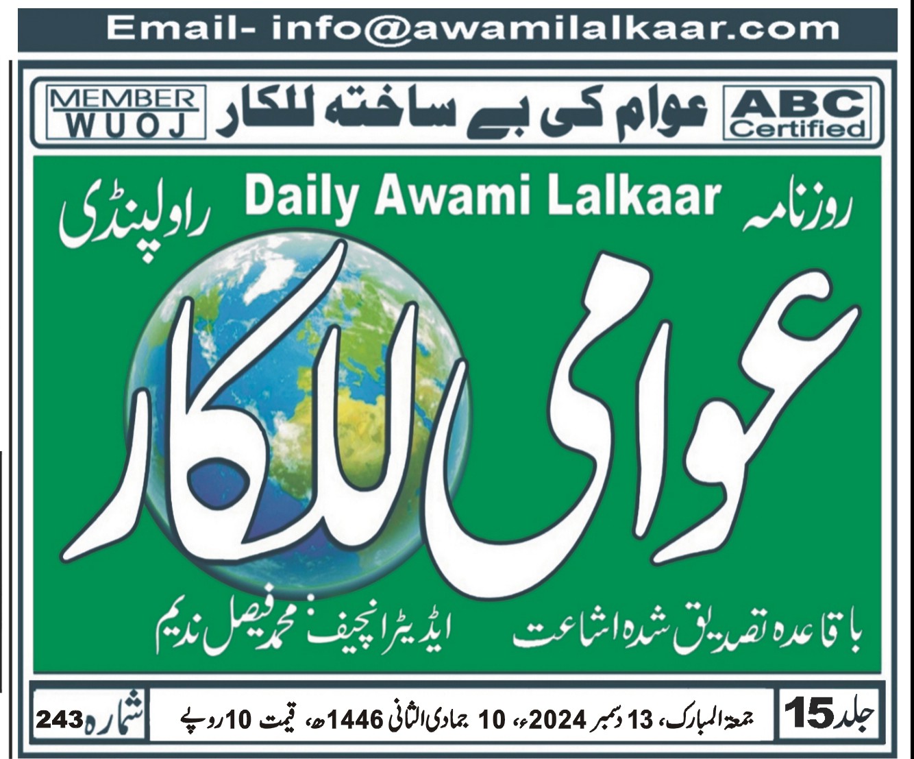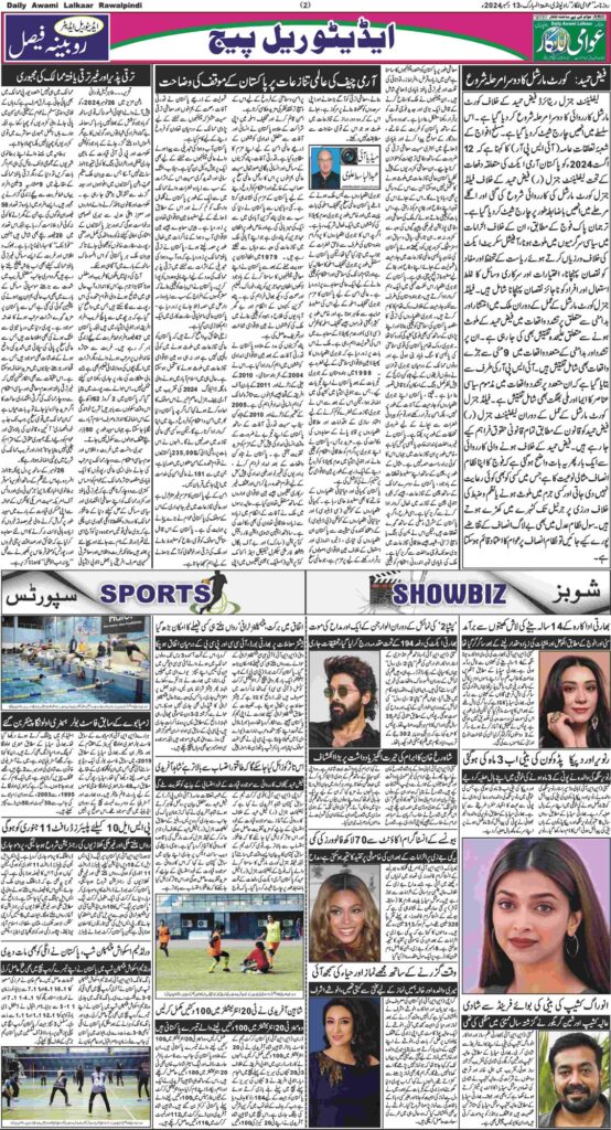 پی ڈی ایف ڈاؤن لوڈ کرنے کے لیے نیچے دیے گئے ڈاؤن لوڈ کے بٹن پر کلک کیجیے Awami Lalkaar 13-12-2024ڈاؤن لوڈ